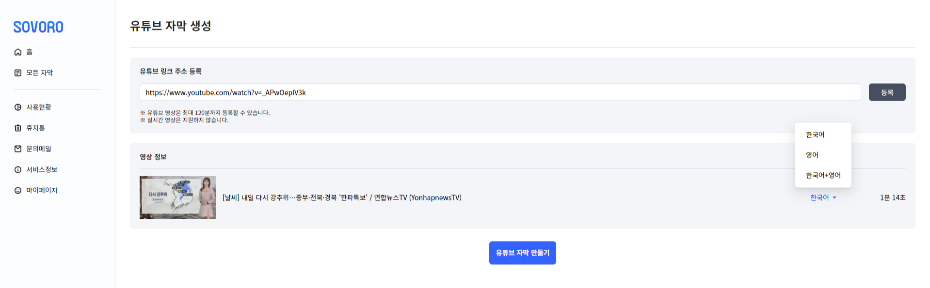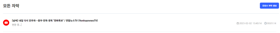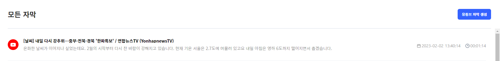 하단에 '유튜브 자막 만들기' 버튼 클릭!