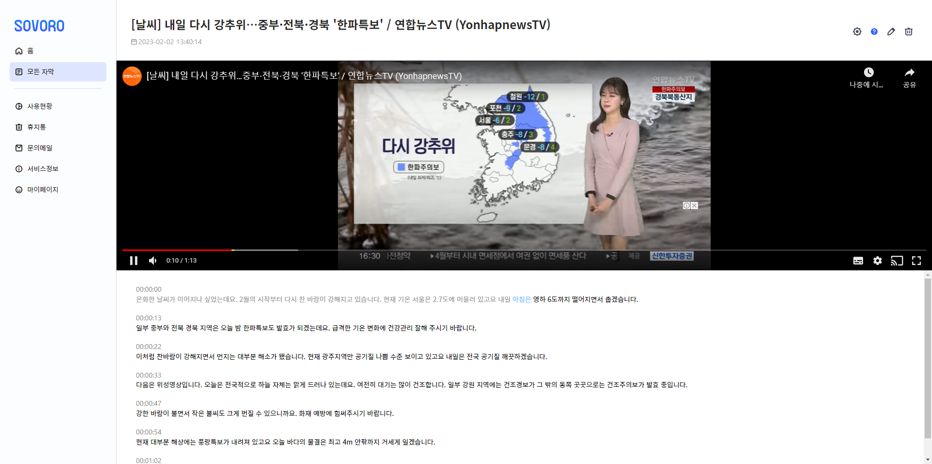 소보로 FOR 세상파일 - 유튜브 영상도 정확도 높은 자막과 함께! 유튜브 자막 생성